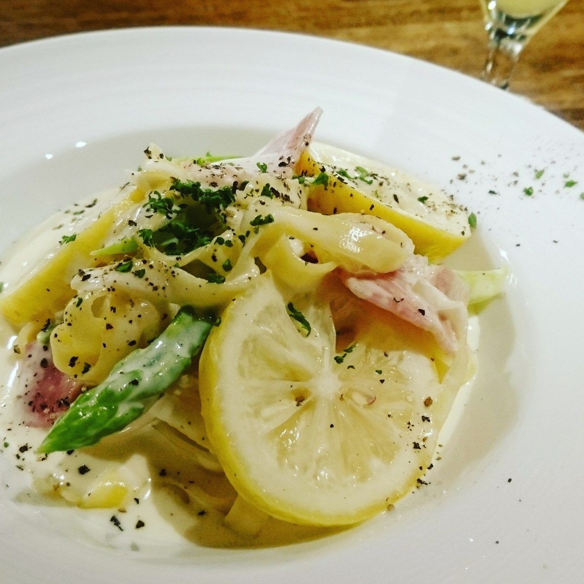 グラタンとパエリアが得意料理なのですが、最近手早くできるレモンパスタが気に入っています。先日とびしま海道にドライブに行った時、新鮮なレモンを沢山買って帰ったので、一度食べてみたかったレモンパスタを作ってみました。南イタリアでは定番のパスタ料理のようです。爽やかな香りと味わいで、かつパルミジャーノチーズやバターのコクもあってとても美味しかったです。皮を使うので新鮮な広島のレモンを手に入れた時、皆様も是非作ってみてください。
